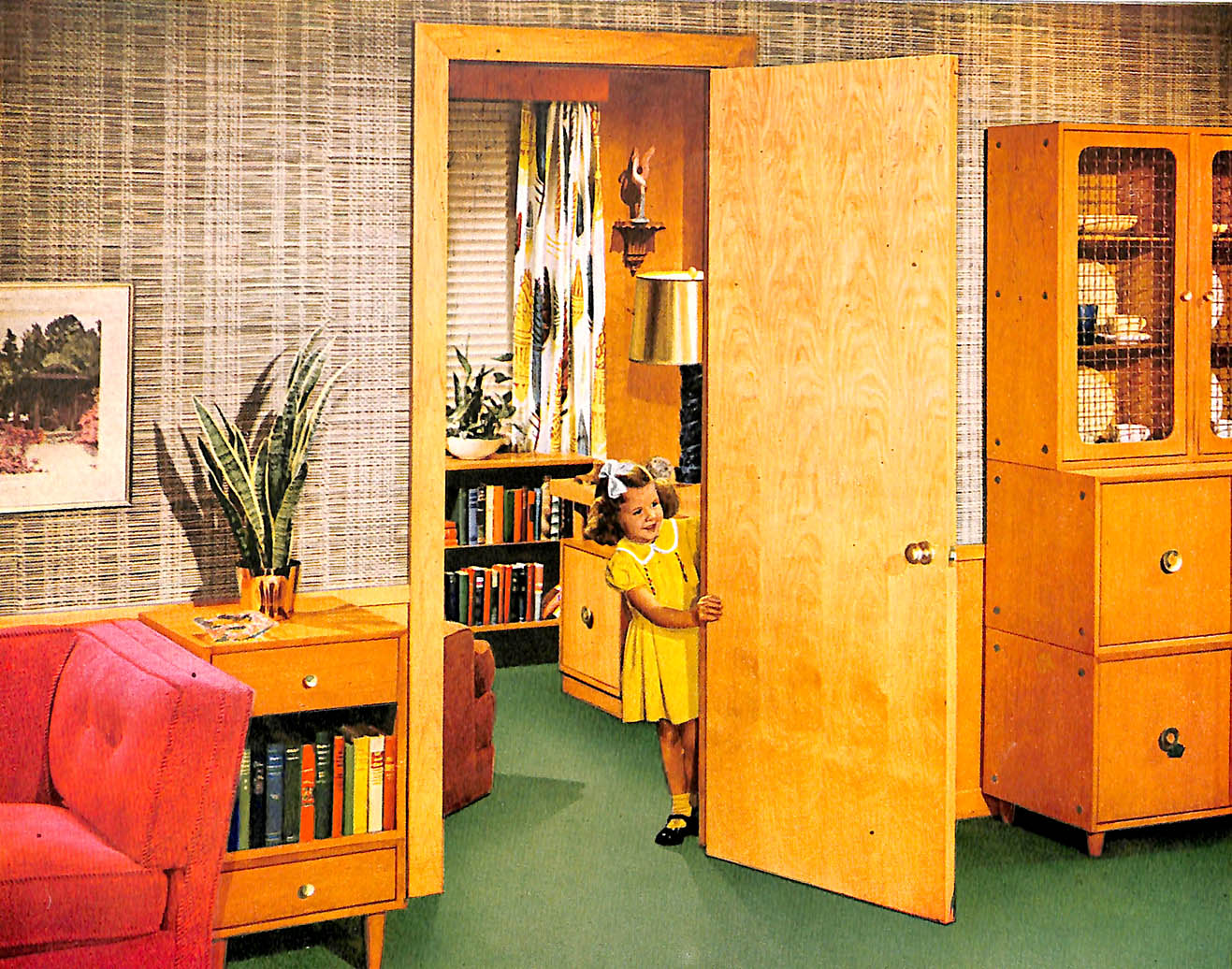 The clean lines of mid-century modern are present in this 1948 ad for Mengel Doors.