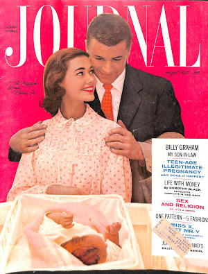 This beautifully-styled ad showing a mom in a starched-white dress reading to her two daughters on a white filigree bed appeared in the August 1958 edition of Ladies Home Journal. The ad is for Sta-Flo starch.