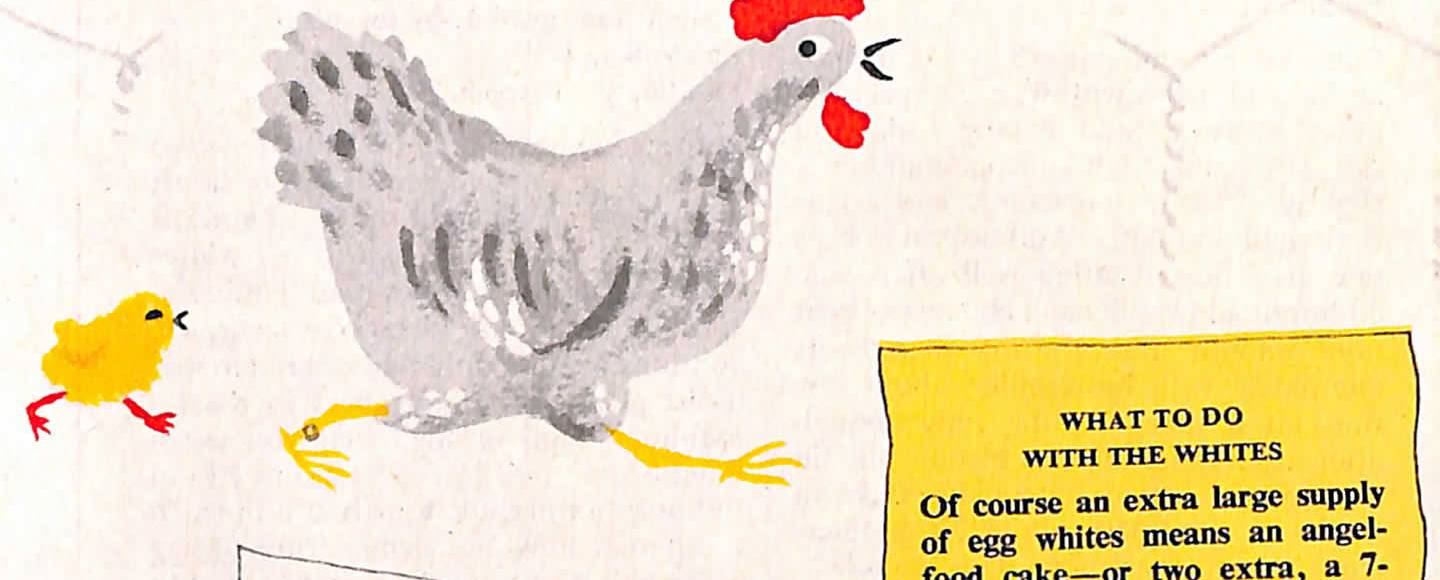 From the April 1950 edition of Woman’s Home Companion, this 1 page article provides guidance on how to use egg whites, and how to count how many are stored in a glass jar.