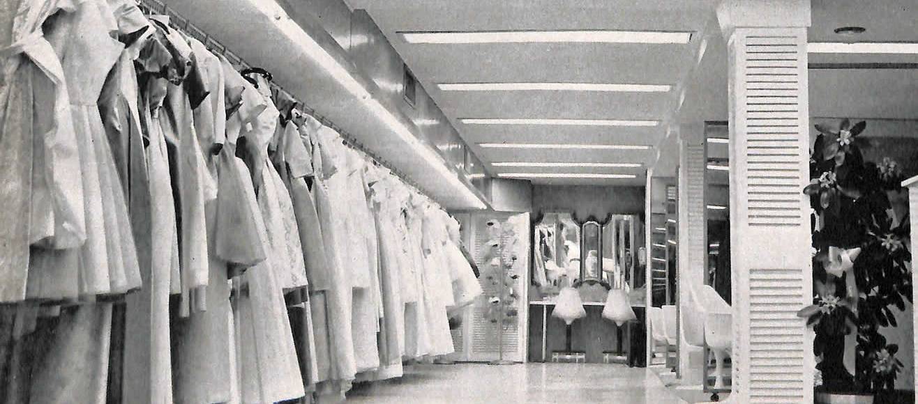 “At the push of a button, an unending array of Bridal Fashions is automatically conveyed before the Bride in the privacy of her own spacious room.”