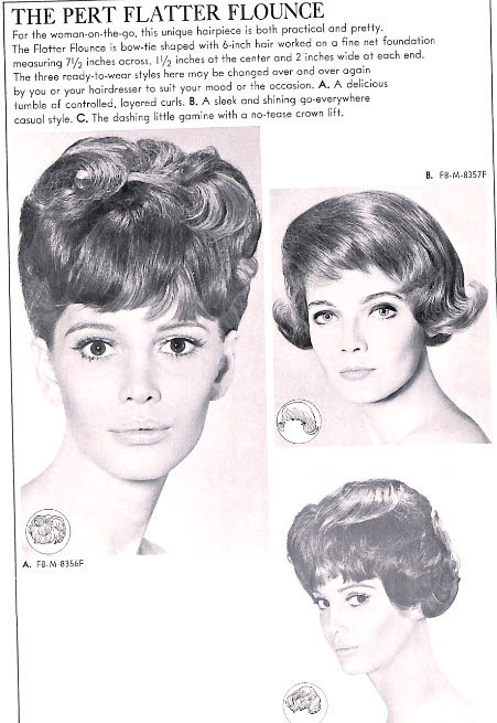 Sears took advantage of the trend and published this magazine in the 1960’s titled, “Sears Fashion Hairpieces and Wigs”. Here is a sampling of what they sold.