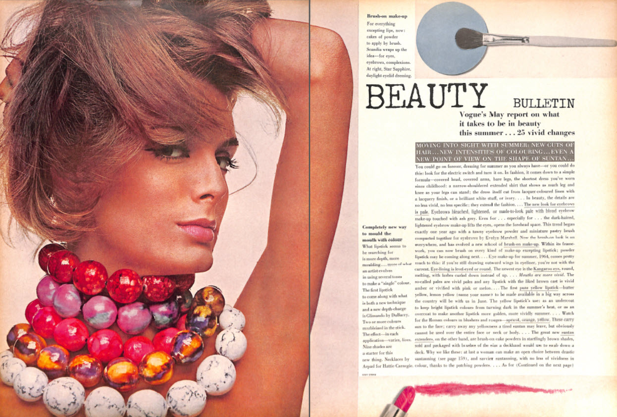 Each month Vogue magazine provides its readers with the latest beauty trends. Here in the May 1964 issue we are told to go with kangaroo eyes.