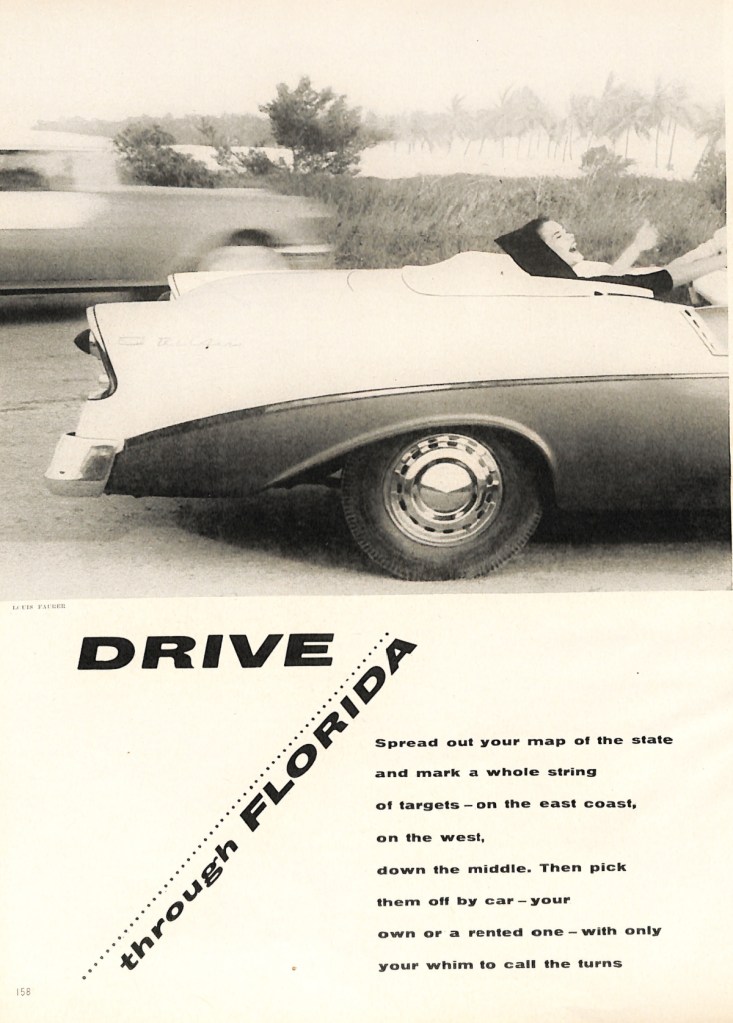 It’s true. I’d love to explore Florida. There is so much to see and do from historical Tallahassee to Disney World to the Everglades to the Keys. Check out the text of the Charm article below to get a rundown of the 1956 recommendations. However, I’m guessing there won’t be a 1956 Chevy Bel Air Convertible available at the local Avis. What a cool looking car!