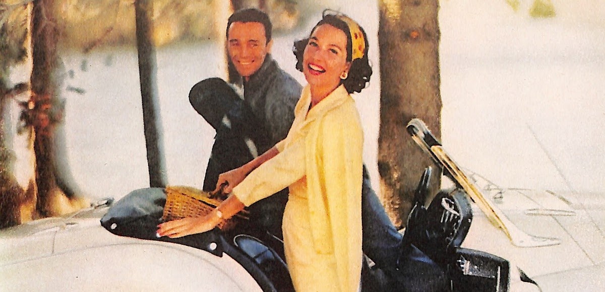 This ad was published in the September 1959 edition of Good Housekeeping Magazine. The photo shows an attractive couple in a white sportscar.