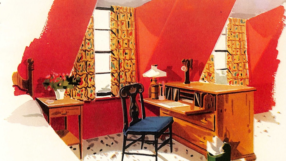 Great mid-century modern room illustrations in this 1953 home décor article.