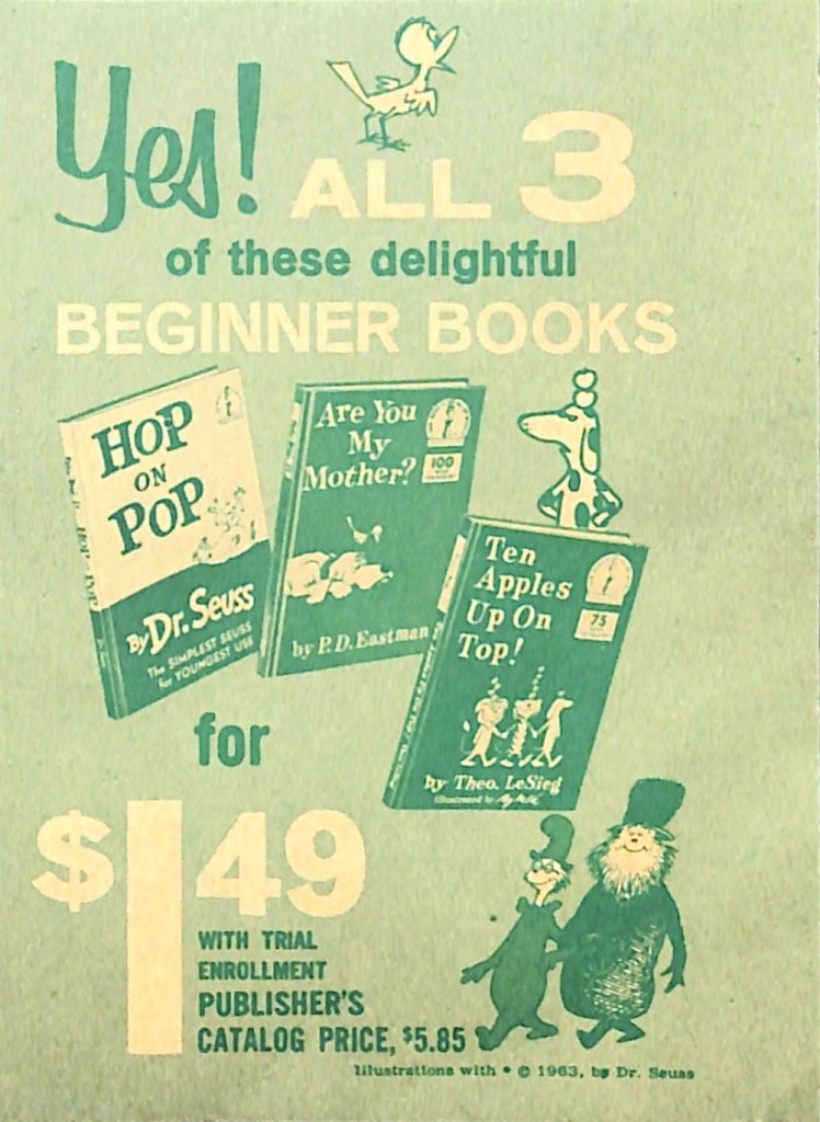 Early reader books were a thing in the mid-century. I have vivid memories of learning to read from both the Dr Seuss and the more serious McGuffey reader Dick and Jane books. In fact, it is highly possible that my mom signed up for this very program.