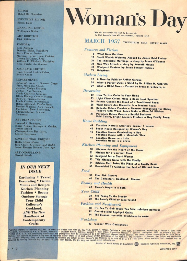 Here’s a look at what the Women’s Day moms from 1957 would have read.