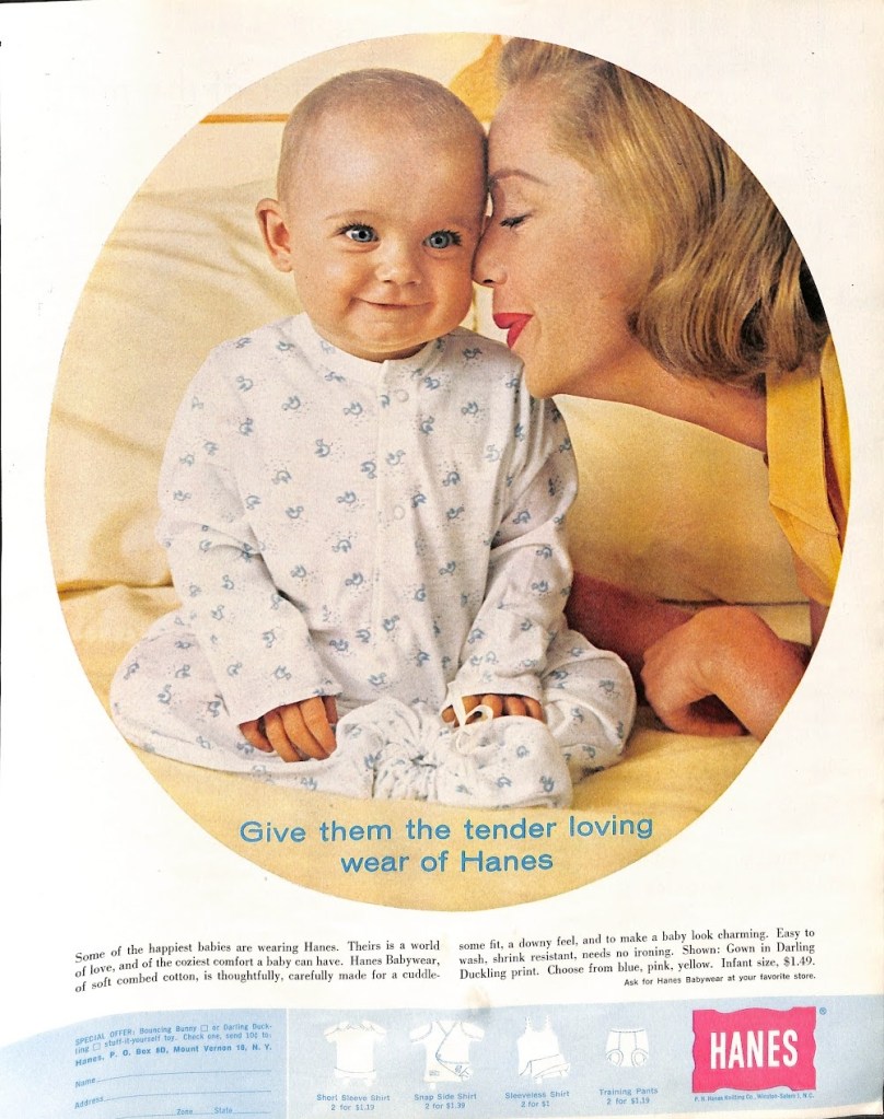 Its safe to say that infant wear from the mid-century is pretty much the same as it is today. This sweet ad from Hanes babywear reminds us that the baby sweetness is universal. Let’s file this one under adorable.