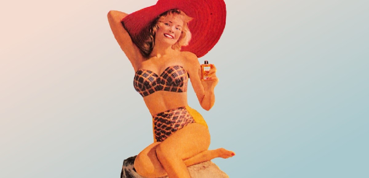 A look at a mid-century summer wouldn’t be complete without a look at suntan lotion. The culture was much different in 1951 when this ad for Tartan Suntan Lotion appeared in the July issue of Today’s Woman magazine. The effects on skin from the sun was not as clearly known as it is today. Air conditioning was not yet a reasonable alternative to excessive heat, and the beach was a welcome treat for a hot summer. Summer meant a suntan and a great suntan was a sign of health and status.