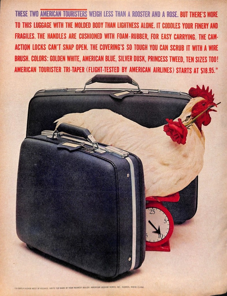 This luggage ad from American Tourister appeared in the May 1961 edition of McCalls magazine. Its tagline read: