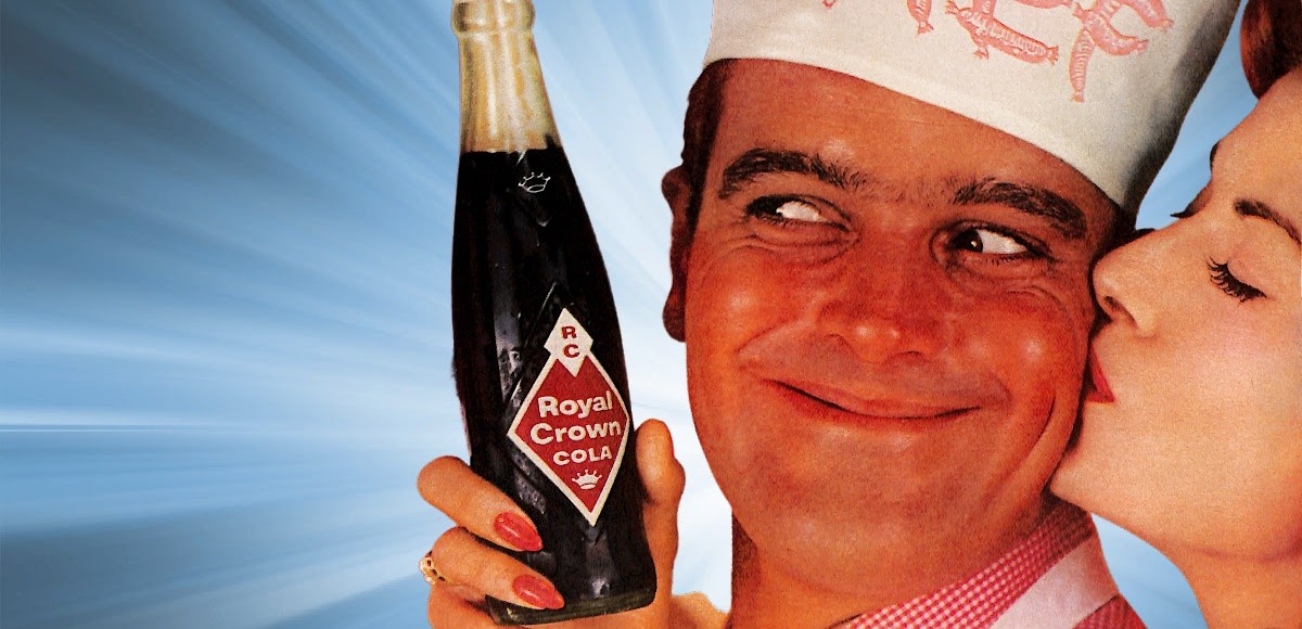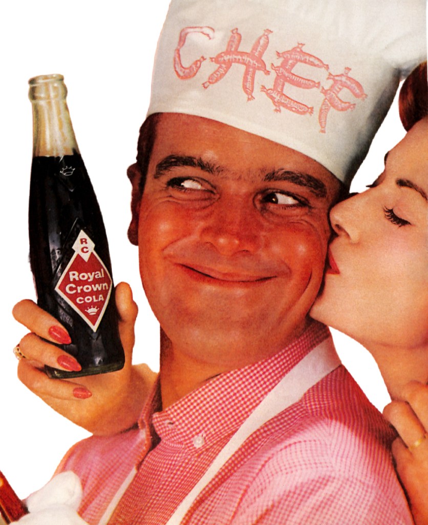 Here’s a mid-century ad for a mid-century cola. The cook is kissed and presented with a bottle of Royal Crown cola. It’s tagline?