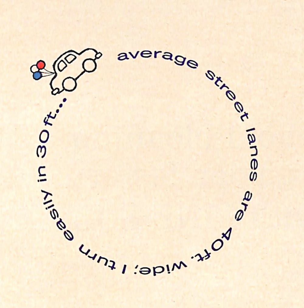 This 1961 Renault Dauphine ad talked about the car’s ability to turn easily and fight traffic while getting 40 MPG gas mileage.