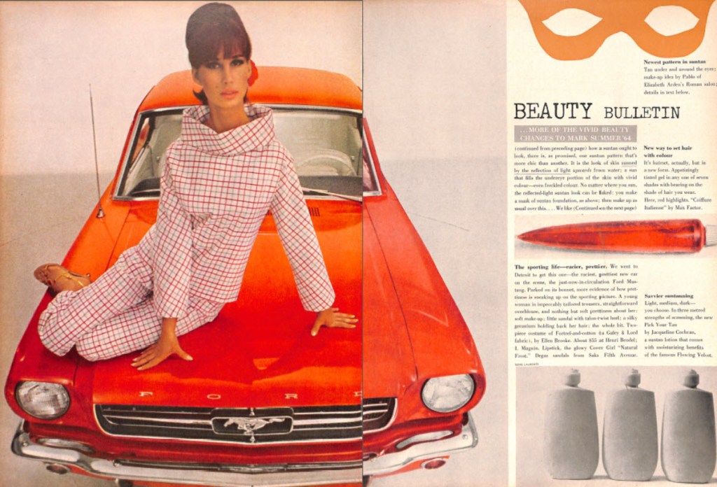 The Mustang entered 1964 with a bang. It was not only considered cool, but elegant and fashionable. Check out the high fashion model sitting on the hood of a Mustang below. This wasn’t an ad, but a fashion editorial from the May 1964 edition of Vogue magazine.