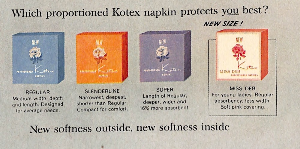 These wholesome looking partygoers are brought to us by Kotex. The ad appeared in the September 1952 edition of McCalls magazine as part of Kotex’s “Are You In The Know?” campaign. The brand and its advertising would change significantly as the decade progressed. This posting shows Kotex’s various ad campaigns through 1964.