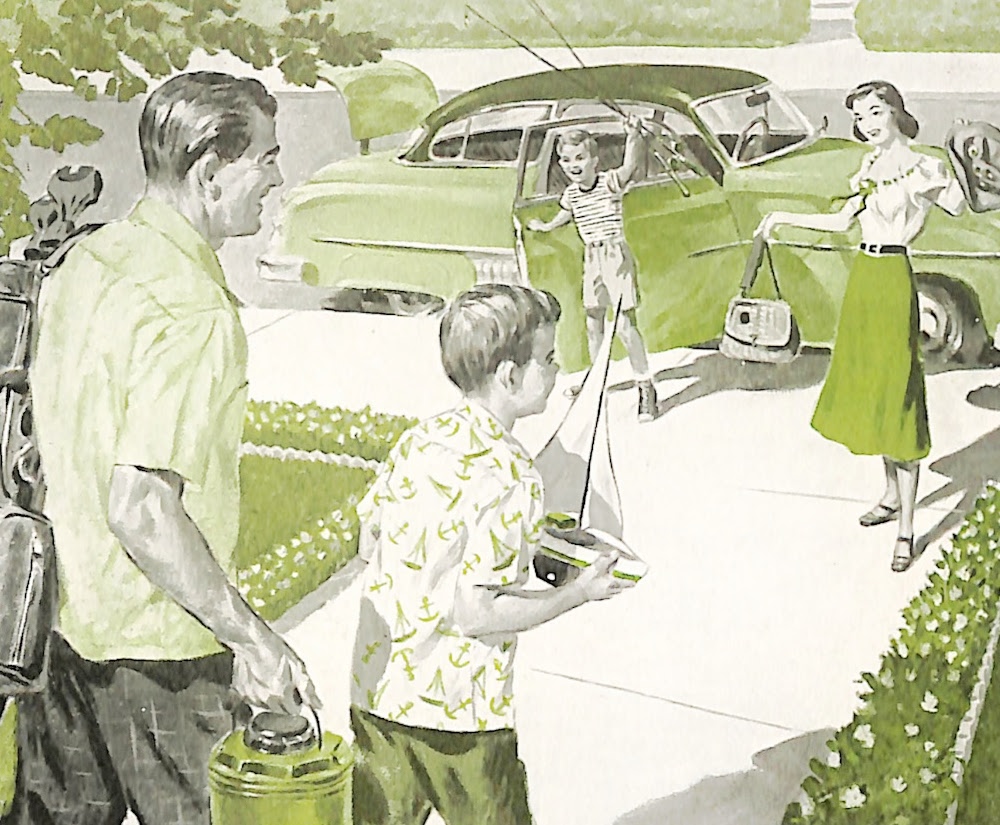 Here’s another example from earlier in the decade. Who can’t resist this great mid-century picture of a family preparing to leave for a trip to the country.