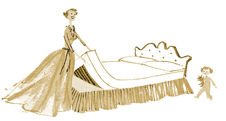 Print advertising is always fascinating to me. How does one take a boring subject like bed sheets and turn it into something interesting? This 1947 ad for Pacific Sheets is why I like to read ads in mid-century women’s magazines.