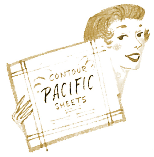 Pacific sheets was a Pacific Mills product in the mid-century when it was a later a part of Wamsutta mills. It is part of a long history of textile production in Massachusetts starting in he mid 19th century. Wamsutta sheets are currently sold at Bed Bath and Beyond.