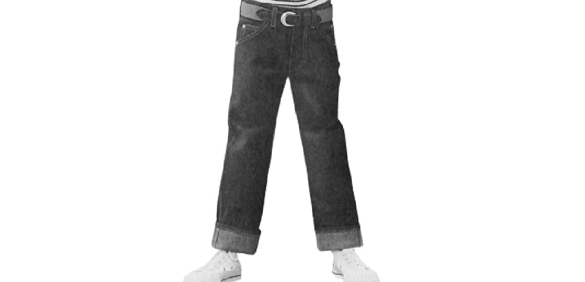 A modern-day version of classic rolled up Lee Riders is found on lee.com. The 2022 men’s (no luck finding a similar look in boys denim) version is styled with boots and no belt. You can see the classic denim selvedge on the rolled up version. The 1963 version is a surged seam. Both versions show off the leather patch that brands it as Lee.