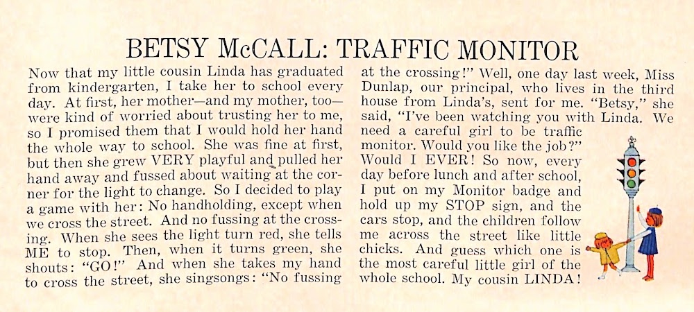 I couldn’t resist one more Betsy McCall paper doll post. Previously this month, I posted a Betsy McCall doll on her first day of school and a Betsy McCall paper doll on her first day of school. Here is one more. This time she is an older, more responsible paper doll. Her important job? A crossing guard.