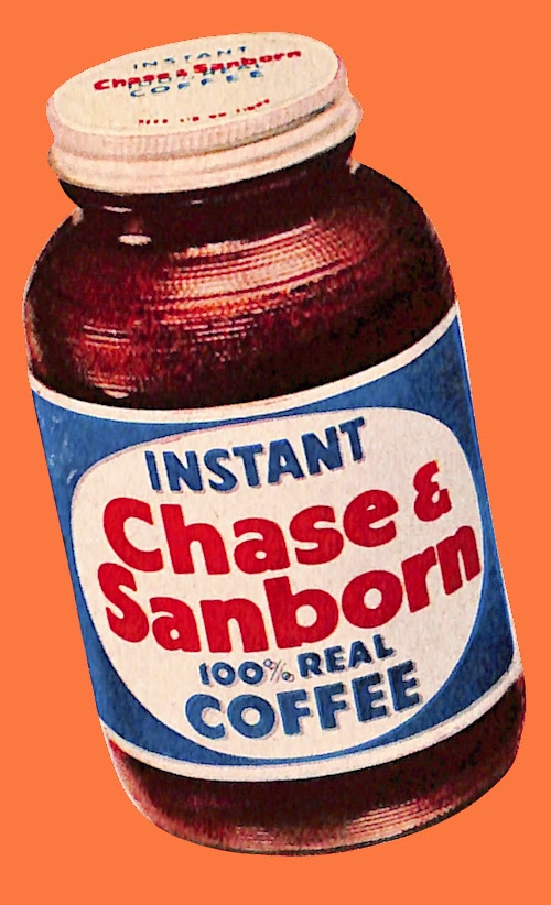First up is this ad from Chase & Sanborn coffee. We’re talking instant coffee here. Just add a scoop to hot water, and you have yourself a hot beverage.