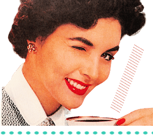 Here’s one more post about mid-century coffee. So far this month we’ve seen kitschy close-ups of happy or inquisitive women from the 1950’s holding a cup of coffee. We’ve seen this one . . .