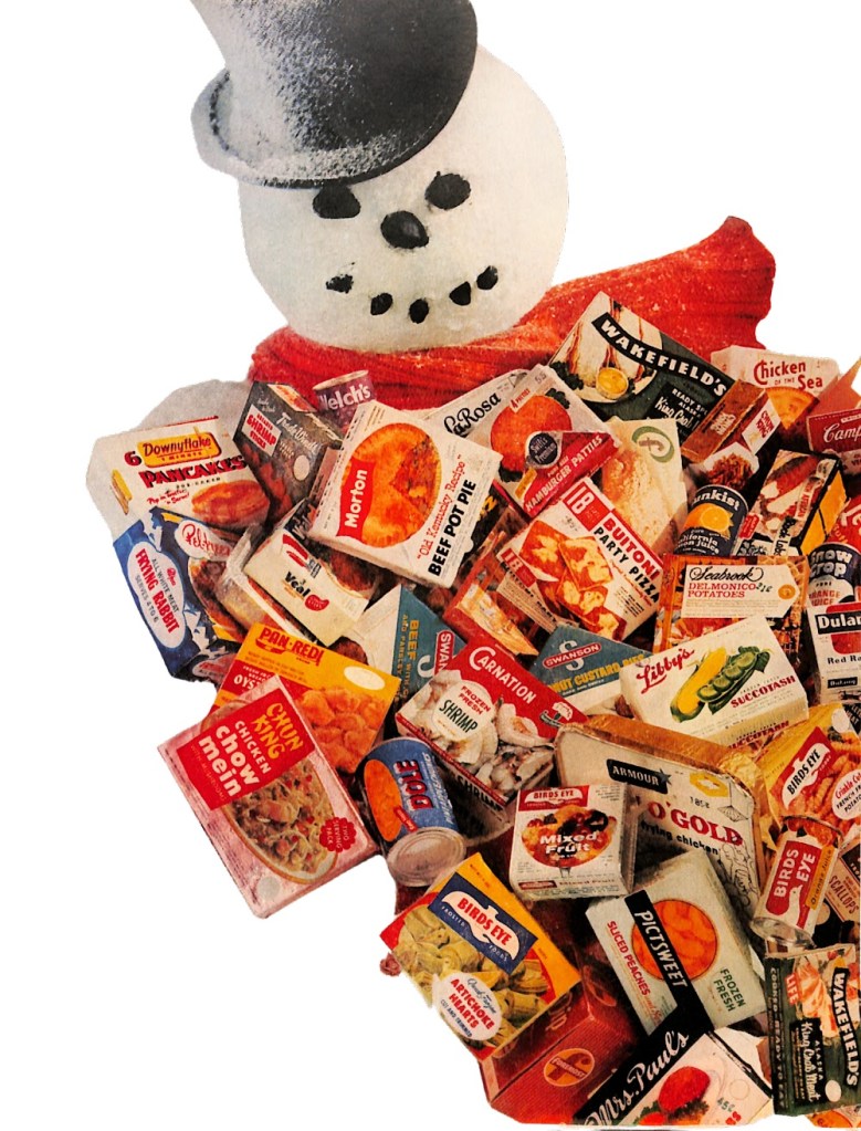 The picture you see of Frosty filled with frozen food comes from the May 1959 edition of Good Housekeeping magazine. It accompanied an article titled, “Freezer Living is Luxury Living for Everyone” where the reader was told of the many advantages of frozen food.