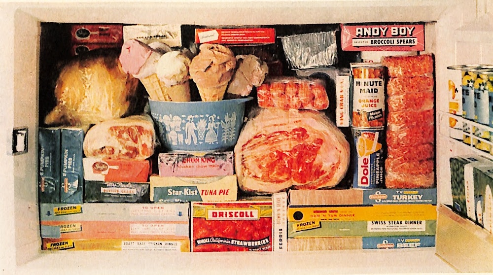 The mid-century was a time when convenience was introduced to the consumer. By 1959, frozen food and packaged processed foods purchased at a super market was becoming mainstream. Electric refrigerators and freezers were now standard for mid-century households. The article gave the reader confidence that frozen food was a reasonable alternative to fresh.