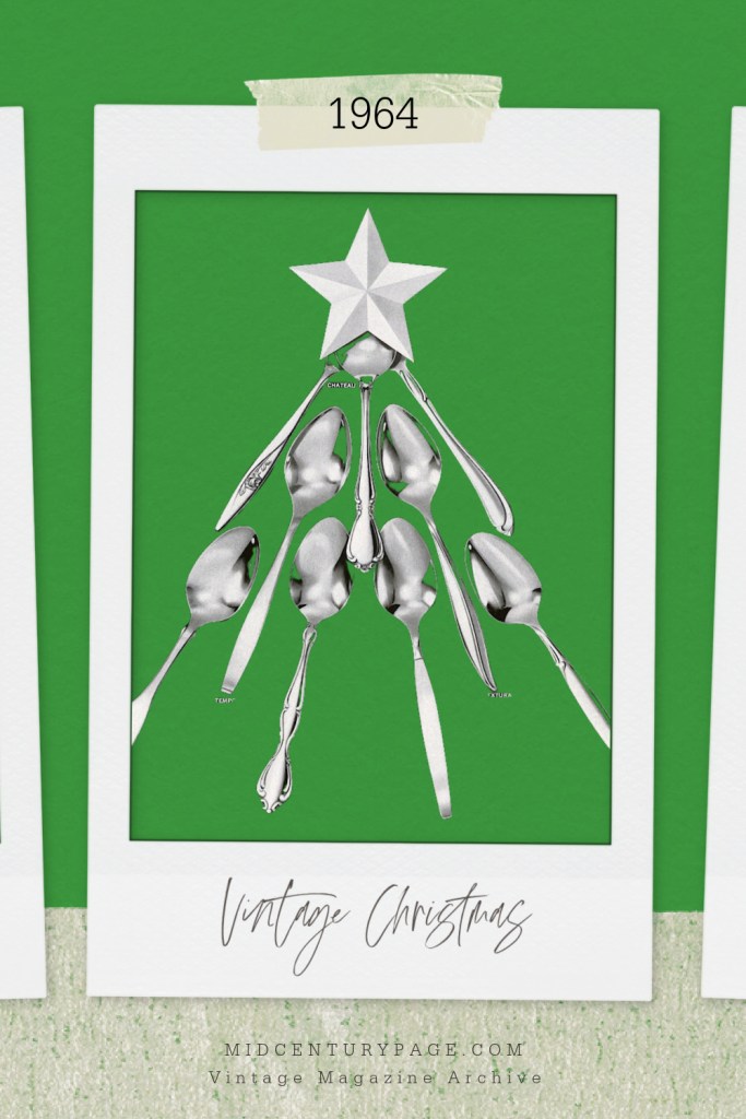 To continue the mid-century Christmas tree theme, here is an ad from Oneida showing their collection of silverware. A matched set of silverware was of great importance to mid-century households. Why not buy a set for a loved one for Christmas?
