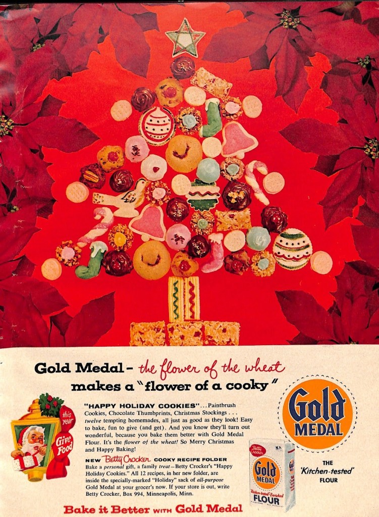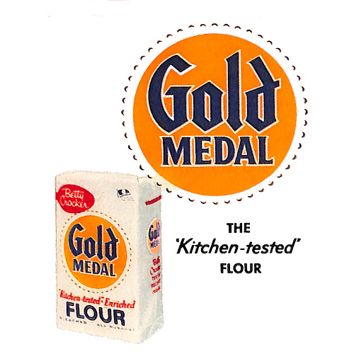 Gold Medal Flour. The ad told the reader that recipes for 12 different cookies could be found at their favorite grocer. The recipes could be added to their Betty Crocker recipe book.