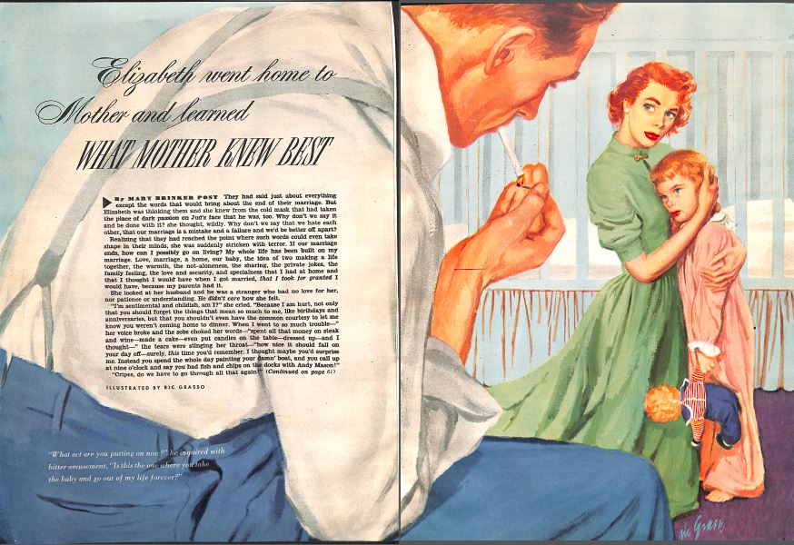 And here’s a look at another short story written by Mary Brinker Post. This one is from the September 1952 edition of EveryWoman’s Magazine. It is illustrated by Ric Grasso.