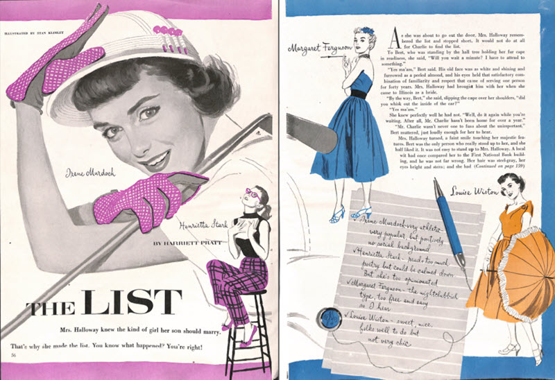 Stan Klimley was a busy illustrator that contributed to magazines like McCalls and Good Housekeeping frequently. It was not difficult to find more Stan Klimley illustrations in my collection of mid-century women’s magazines. Here’s what I found spanning 9 years from 1949 to 1958.