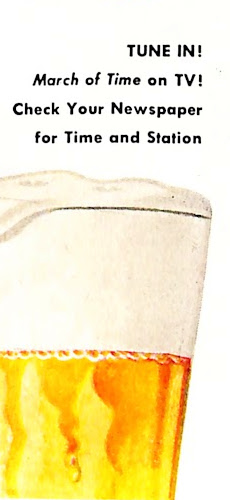 I found this ad for Miller High Life beer in the December 1952 issue of Today’s Woman magazine. It had a nice graphic of the bottle and logo, so I decided to scan it. After looking at it a second time, I noticed it referenced a TV show called “March of Time”. I did a quick internet search and learned that March of Time was a short-lived documentary TV show from Time Magazine that aired on ABC in the very early days of TV. The show had previously been shown in Movie Theaters as a Newsreel short, but moved to TV in 1952. Thanks to the efforts of the folks out there, I found a recording of the show on YouTube. It gives us a lovely view of life in 1952. Scroll to the bottom of the post for more.