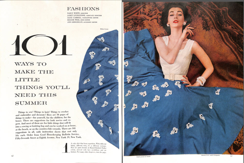 The fashion section of the May 1954 edition of Good Housekeeping had a multi-page article titled, “100 Ways to Make the Little things You’ll Need This Summer”.
