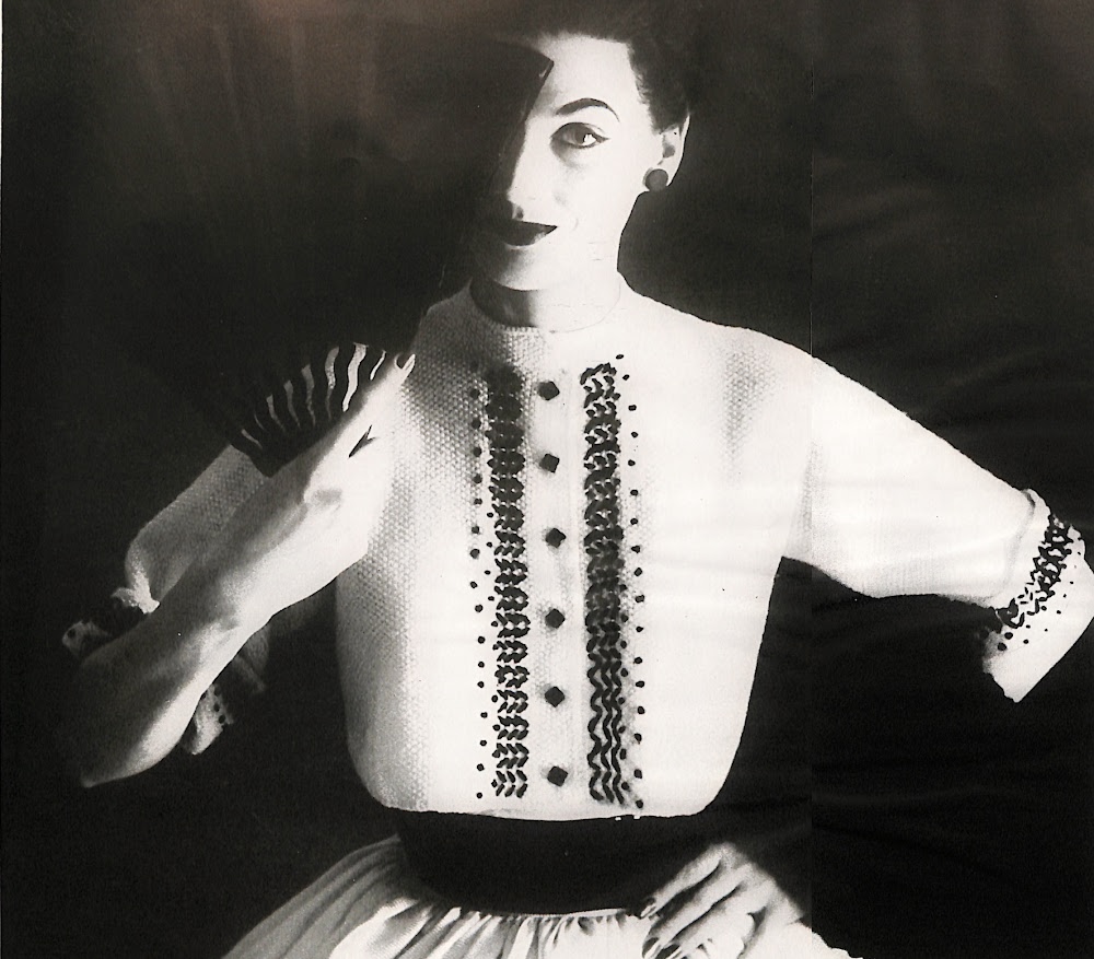 Good Housekeeping described the look below as a “Seed stitched spencer to wear with your bouffant skirts. Embroider in black, add jet buttons”.