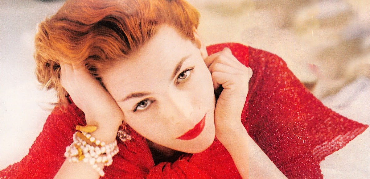 Note the pearl necklace and flower attached to the skirt’s waistline below. Both accessories were typical for 1954.
