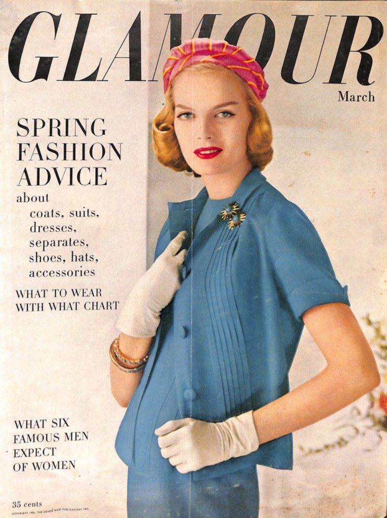Glamour magazine is a favorite of mine. While flipping through he pages, the talents of the editors, illustrators, and photographers are evident. Here’s the cover of the March 1956 issue.