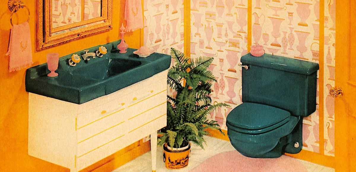 Matching colors was important in the mid-century. When I was a kid growing up in the 1960s, I had an aunt who loved teal. Every item in her house seemed to be teal. When the sun shone through the window, I swear that even the air was teal. This consistent color theme carried in to her bathroom. You guessed it. Her toilet paper was not white. It was a light teal.