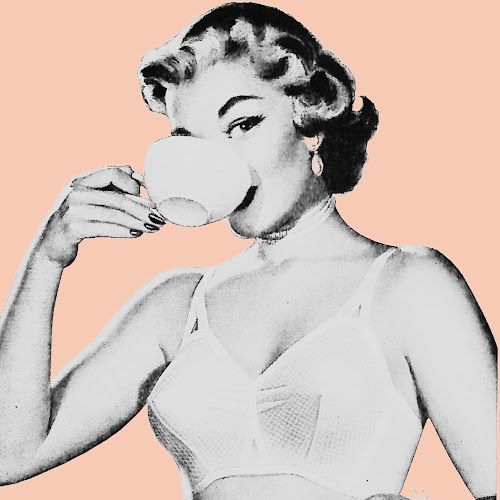 Here’s another fun ad showing a 1950s women drinking coffee. However, this pin-up style illustration of a woman taking a sip is not for coffee, but for bras. Specifically, it is advertising the popular mid-century intimate apparel brand of Formfit.
