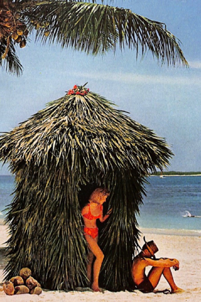 Speaking of the beach, here’s one more look at a vintage couple at the beach. This 1960s couple are in the Bahamas spending time in a grass hut. Add a bikini and a straw hat, and you have yourself a perfect day. The photo comes from a 1964 travel ad for the Bahamas.
