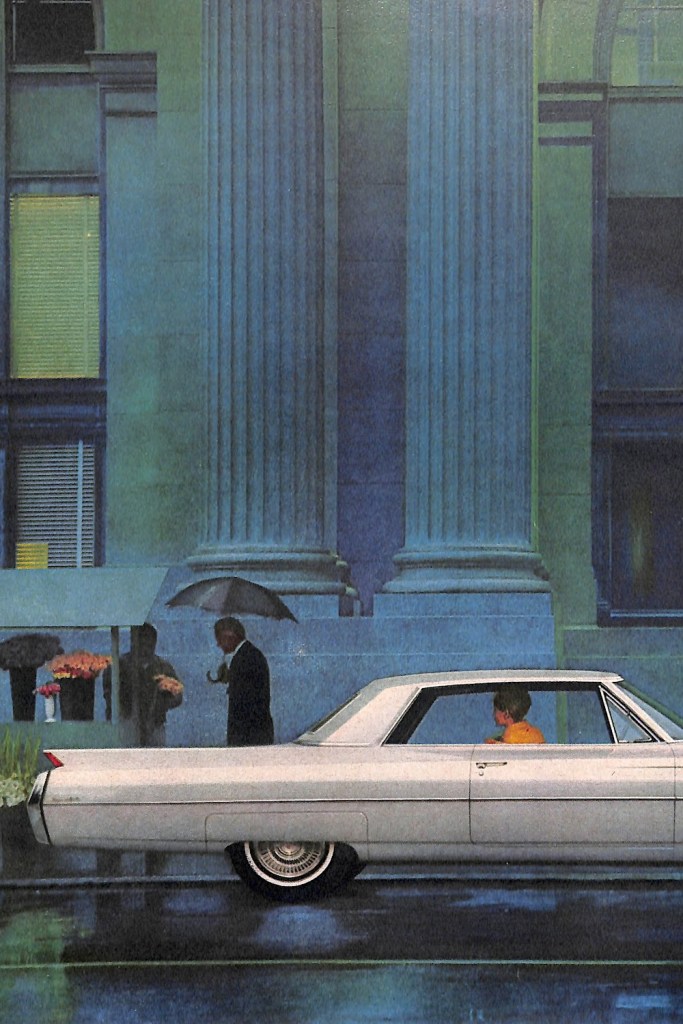 This charming Cadillac ad dates back to 1964. It shows a woman waiting in a Cadillac as her man buys flowers. The beautifully illustrated ad was found in the May 1964 issue of Vogue.