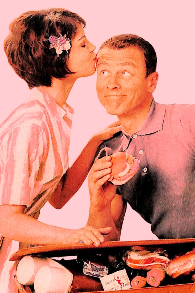 A kiss and a sandwich. This cute couple is brought to us by Underwood Deviled Ham in a can. The ad was found in the August 1963 issue of Good Housekeeping.