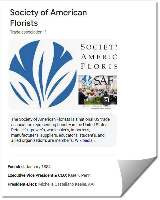 The ad provides a SAF logo and a note that says “Flowers and plants may be wired anywhere in the world”. The association still exists today. A quick search tells us that the organization was founded in the 1880’s. See the screenprint below.