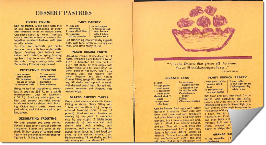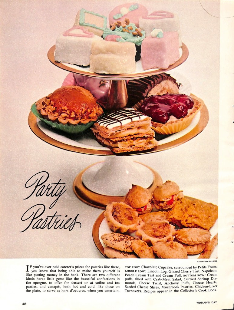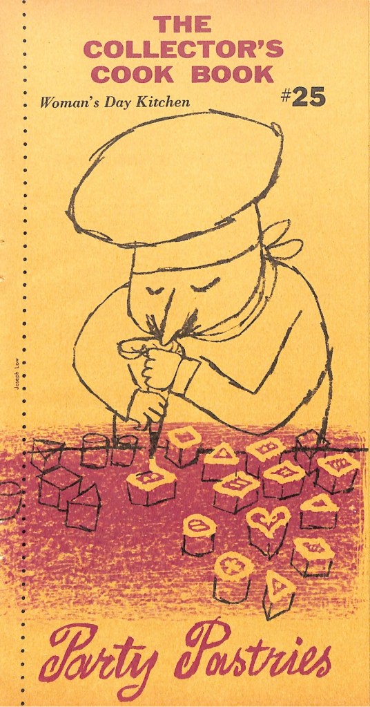 Imagine being a 1950s housewife flipping through the pages of the February 1959 Woman’s Day magazine, and discovering this booklet. Titled “The Collector’s Cook Book #25”, it was all about pastries. Specifically, Party Pastries. Yes please.