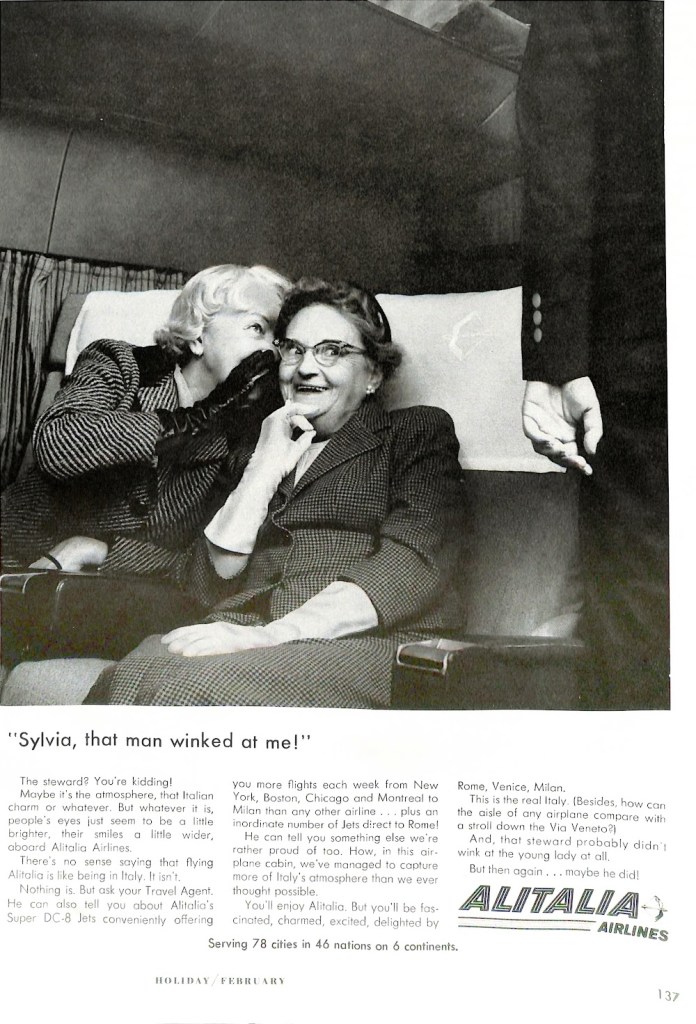 The ad is for Alitala airlines. It appeared in the February 1964 issue of Holiday magazine.