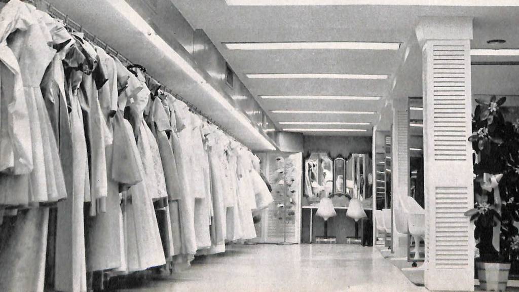 Impressive ad showing a mid-century bridal shop that resembles ours today.